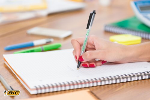 Display stand with 50 Bic Clic ballpoint pens with black ink. Comfortable round barrel and retractable nib. Medium 1.0mm tip writes a 0.4mm line width.